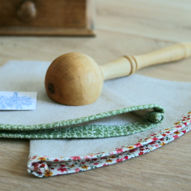 Filtre à café en lin bio / Fleurs turquoises
