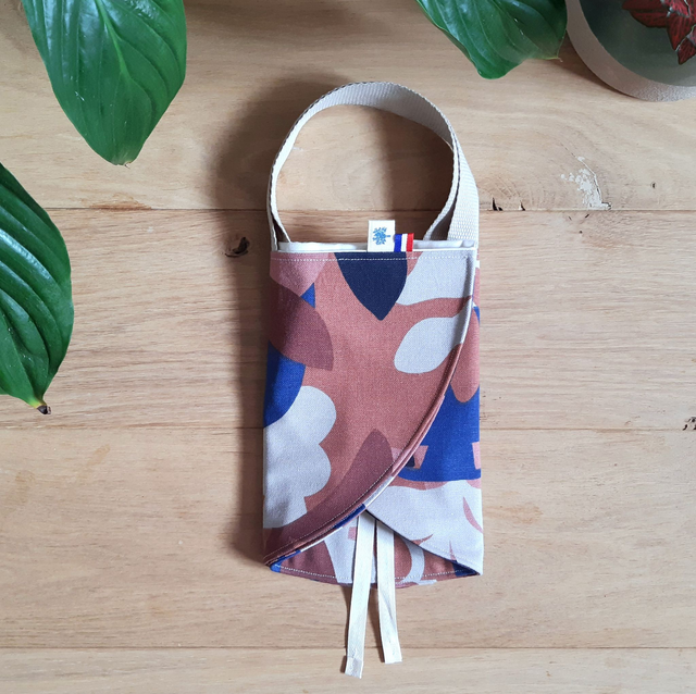 Ce sac est muni de anses pour le transport et se ferme à l'aide d'un cordon en coton.