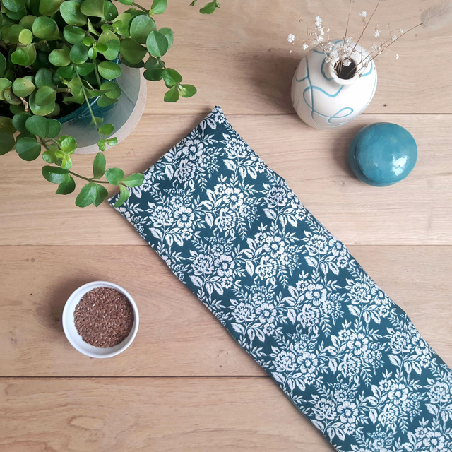 Bouillotte sèche aux graines de lin bio - Grande pour cervicales / Bouquet blanc